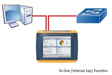 如要找到多个应用性能问题的根源,则必须“位于数据包的路径”中,以便检查实际流量。现在,使用 OptiView XG 中全新的在线分析功能,可将您的分析仪连接到该路径,以便直接查看和捕捉其两个 RJ-45 端口的应用流量。OptiView XG 可让您直接以最高 1 Gbps 的速度连接来实时观察流量,或在线捕捉板载 ClearSight 分析仪详细应用分析的线路速率,无需依靠 SPAN 或镜像端口(会隐藏甚至引起问题)或随身携带一个额外的硬件(外置分路器)。在网络和客户端、接入点、服务器或任何所需位置之间连接,以便获取应用级别的可视性。