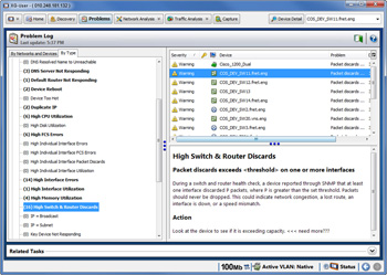 您的网络会出现各种不同的错误和问题,而找不到可能的起因和现成的解决方法将增加解决问题所需的时间。内置的“Guided Troubleshooting”(指导性故障排除)引擎减少了确定根本原因和解决问题所需的时间,提高了员工的效率。点击问题日志中的任何一个问题,将立即为您显示该问题的可能起因、潜在影响以及可能的解决方案。