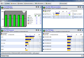 一旦捕获流量,启动 Integrated ClearSight? Analyzer (iCSA) 来查看跟踪文件以应用程序为中心的视图。通过一个简单直观的首页,iCSA 呈现您网络上应用程序健康状况的全面高级概览。从该框架,您可深入获得更详细的信息。例如,您可以显示所有 HTTP 应用程序的活动,然后深入查看每个服务器上的活动,并进一步了解服务器流量情况,观察流量的实际媒体内容。iCSA 还进行基于时间的分析,提供详细的趋势和统计信息,以快速分析大型捕获文件。这个空前的控制水平和可视性,提高了应用程序问题解决的速度,最大限度地减少了整个网络的停机时间。